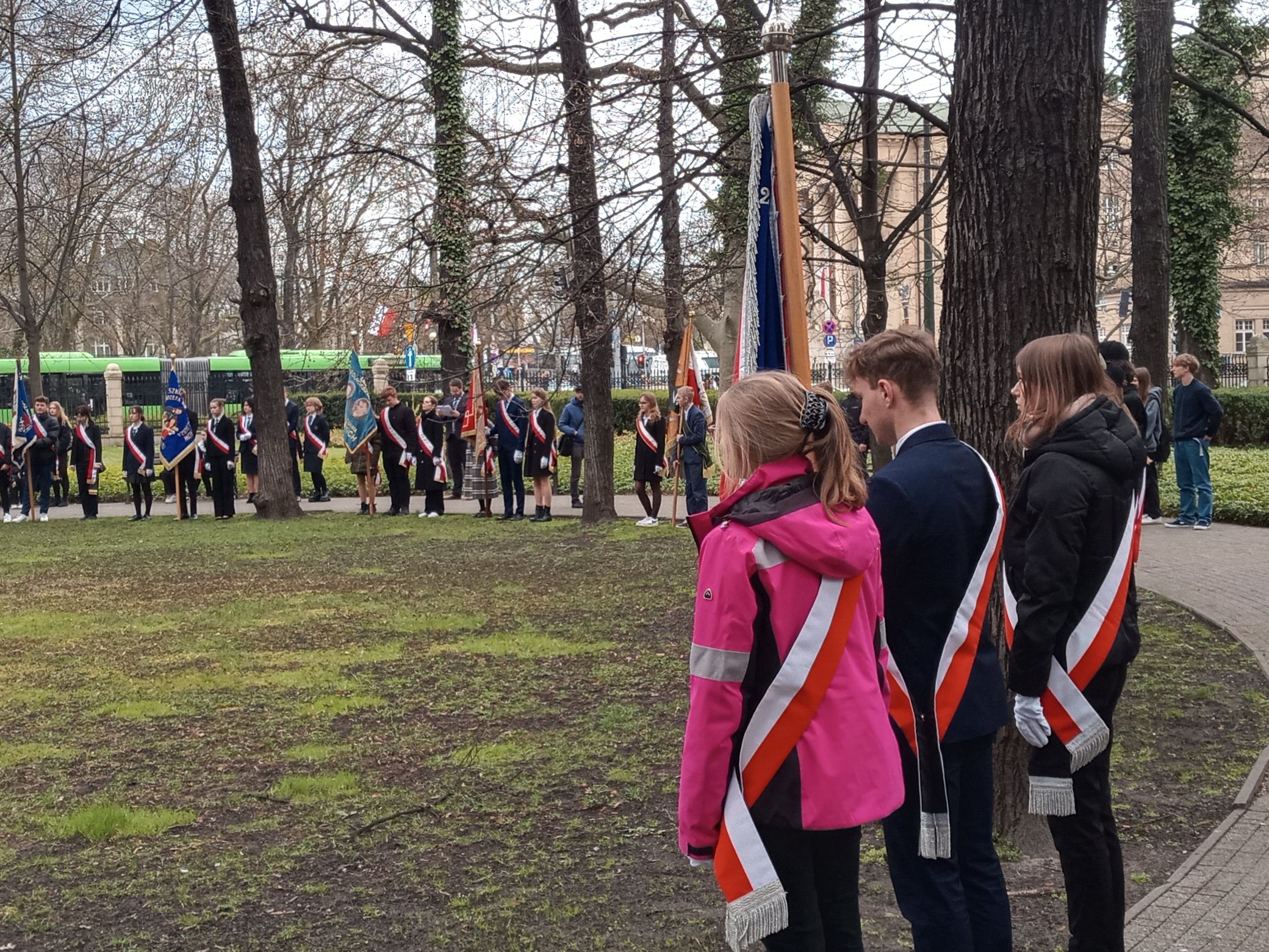 Zaszczyt reprezentowania naszej szkoły przypadł: chorążemu, czyli Janowi z kl. 3B, a także Ani oraz Izie (kl. 4GC). Dla obu tegorocznych maturzystek było to pożegnanie z służbą w poczcie sztandarowym. Od 2019 r. wzorowo wypełniały swoje obowiązki, wielokrotnie reprezentując ZSE Nr 2 na uroczystościach szkolnych i pozaszkolnych.