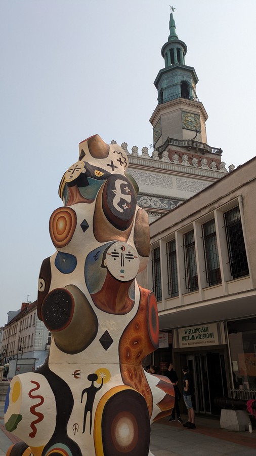 Wycieczkę rozpoczęliśmy na Starym Rynku, przy wejściu do Galerii Miejskiej Arsenał. Miesiąc temu została odsłonięta kolorowa, wysoka rzeźba „Ziemia, której jesteśmy” Ogromną konstrukcję w formie totemu stworzył Jakub Julian Ziółkowski, uznany rzeźbiarz i malarz.