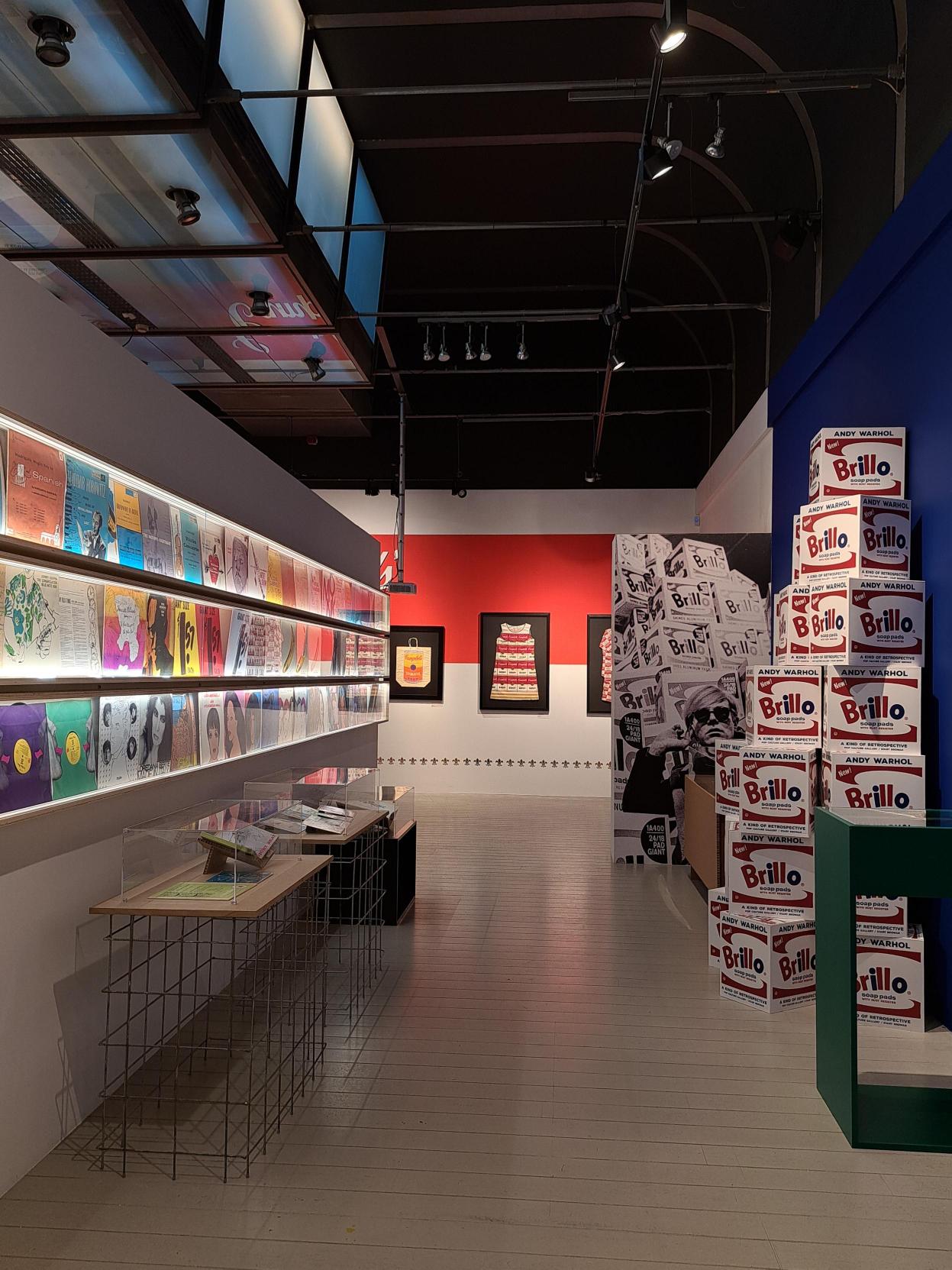 kariery związane są z reklamą i grafiką komercyjną. Tapeta "The Cow" i prace z wizerunkiem Mao to przykłady zabiegów multiplikacji i gry z formatem. The Souper Dress - sukienka z nadrukiem z puszki zupy Campbell - symbolizuje zacieranie granic między sztuką, a produktem. Oryginalne polaroidy z lat 70. i 80. pokazują formalne eksperymenty w intymnej skali. Nie zabrakło też Marilyn Monroe - wizerunku gwiazdy w nieoczywistych i rzadko prezentowanych realizacjach, jak grafika z ustami aktorki z 1964 r. i animacja "You Are the One" stworzona na komputerze Commodore Amiga.