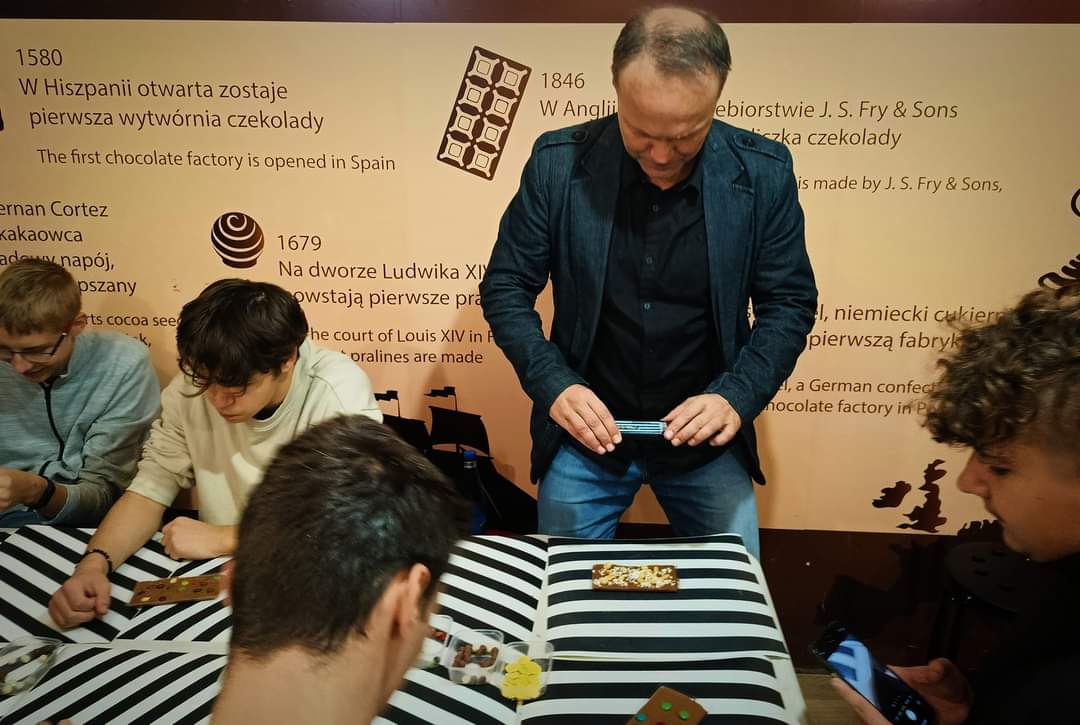- Pierwszym punktem było Muzeum Czekolady, na ulicy Wrocławskiej, w którym zapoznaliśmy się z kunsztem czekoladnictwa, informacjami na temat uprawy, zbiorów i przetwórstwa czekolady. Uwieńczeniem było zrobienie własnej tabliczki, pysznej, belgijskiej czekolady, która jednak szybko zniknęła w brzuchach uczestników.