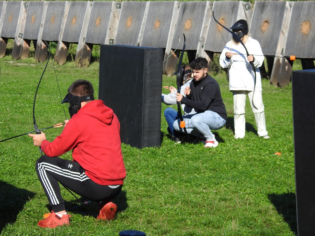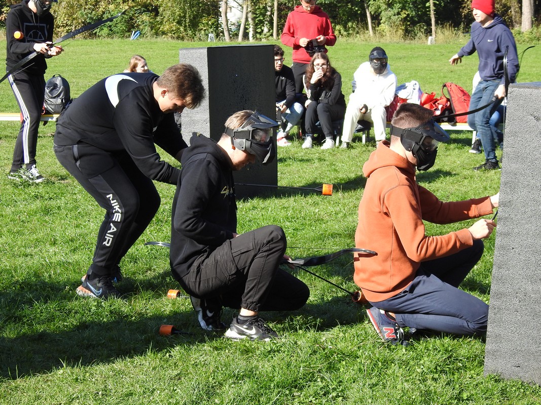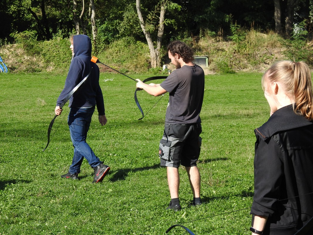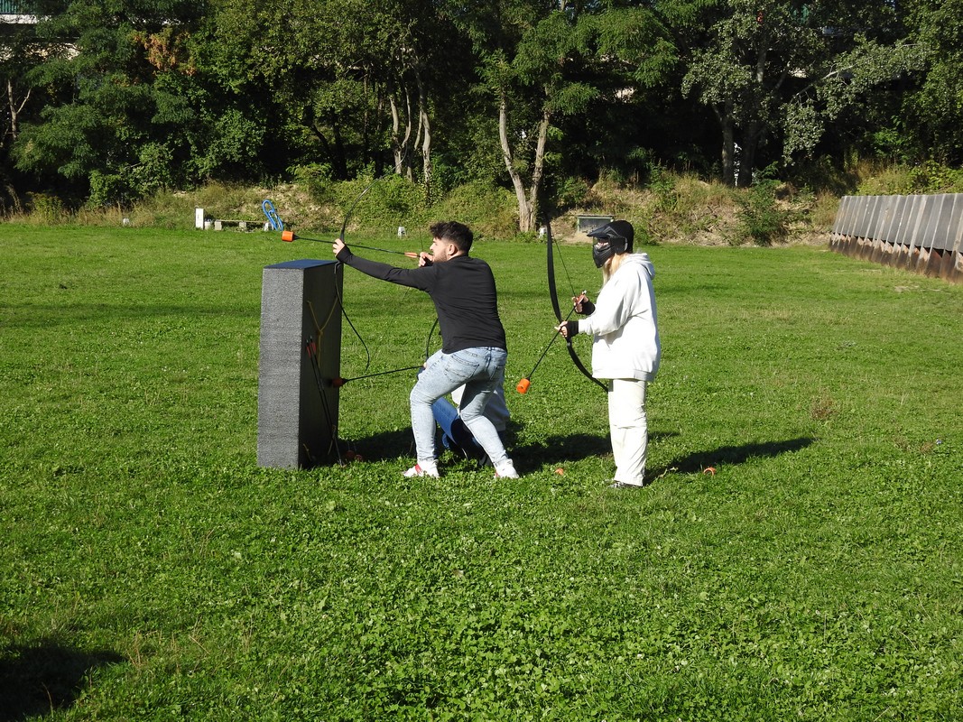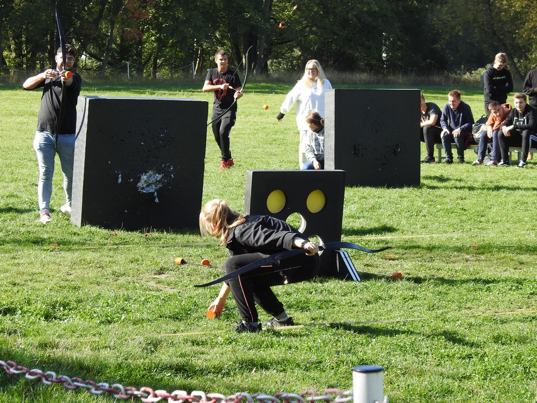 Trener Mariusz przeprowadził szkolenie, podzielił nas na grupy po 6 osób. Po rozdaniu łuków dopadliśmy do strzał, które rozłożone zostały na środku pola walki. Każdy z uczestników łapał trzy strzały i uciekał za maty. Osoby zbyt wolne zostawały trafione strzałą i musiały poczekać pewien czas. Czas oczekiwania uzależniony był od celności kolegów z drużyny, którzy mogli „wykupić” trafionych celnym strzałem w krążek specjalnej maty. Wybicie krążka oznaczało powrót do gry.