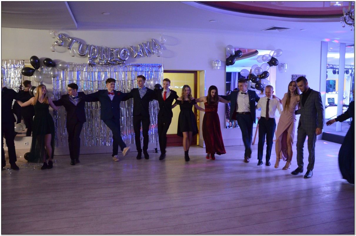 Studniówkę rozpoczął polonez oraz toast wzniesiony tradycyjną lampką szampana. Były przemówienia, podziękowania i kwiaty. Szczególne, Maturzyści złożyli Rodzicom, którzy nie szczędzili czasu i wysiłku na zorganizowanie tej wyjątkowej imprezy. Ciepłe słowa usłyszeli również wychowawcy i obecni członkowie grona pedagogicznego.