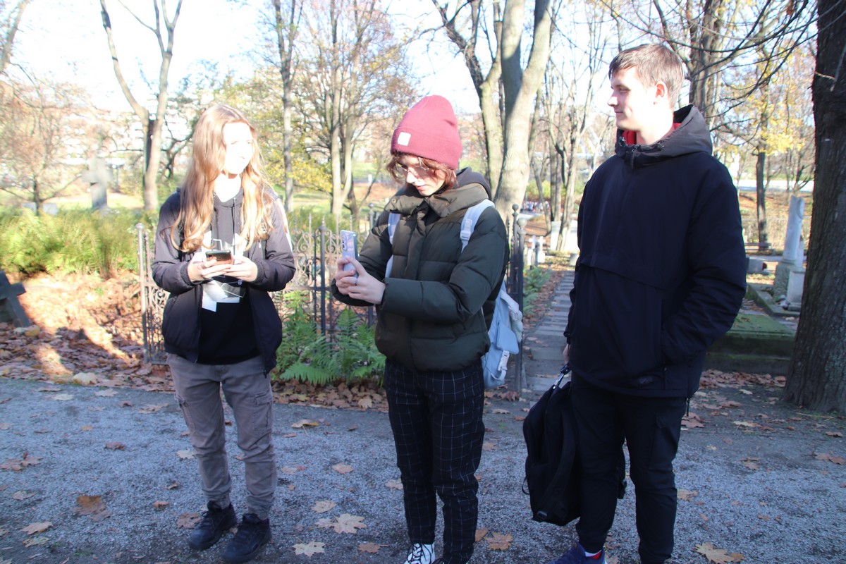 Uczniowie podzielili się na dziesięć grup, wylosowali nazwiska osób, których groby musieli odnaleźć, następnie zrobić zdjęcie grobu i sporządzić notatkę.
