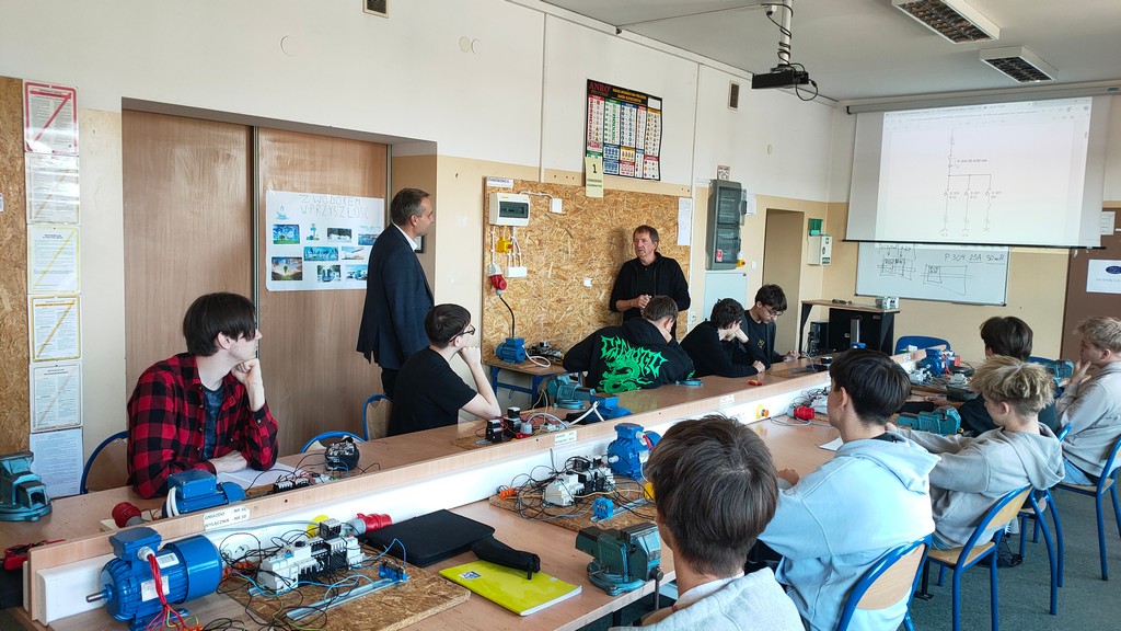 Podczas spotkania mieliśmy okazję zaprezentować naszą placówkę, w tym nowoczesne pracownie oraz halę gimnastyczną.